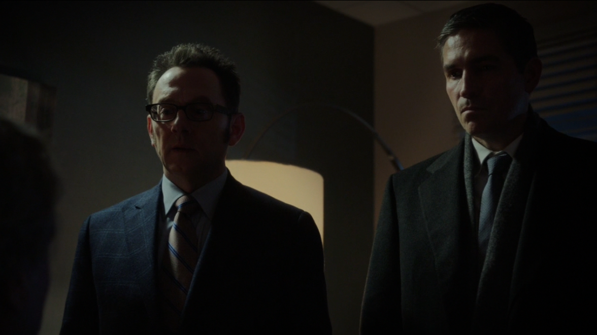 (Above) Person of Interest stars Michael Emerson (left) and Jim Caviezel (right) in a shot that typifies Billeter’s emphasis on noir-ish darkness on the show.