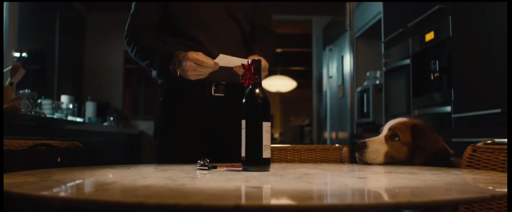 In The Gift, Jason Bateman and Rebecca Hall play a newly-relocated-to-L.A. couple terrorized by one of Bateman’s former high school classmates (the film’s writer/director, Joel Edgerton). Here’s a sample from the Filmmaker interview, which references the frame above – a slow push in to a bottle of wine Edgerton has sent as ..wait for it…a gift.