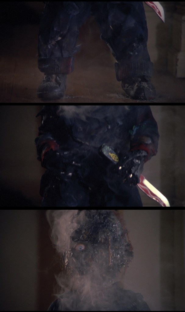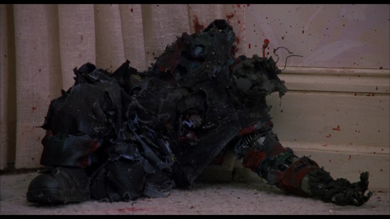 The first kill scene in Child’s Play comes about twenty minutes into the film as Chucky dispatches a babysitter watching over his new owner, Andy. At this point, the movie is still playing coy with Chucky so in this scene we never see the little bugger.