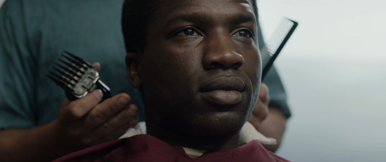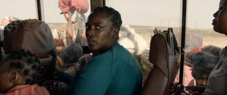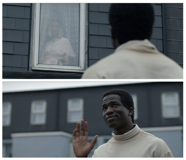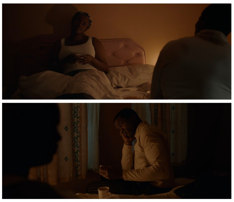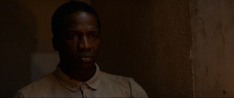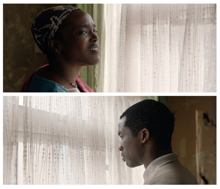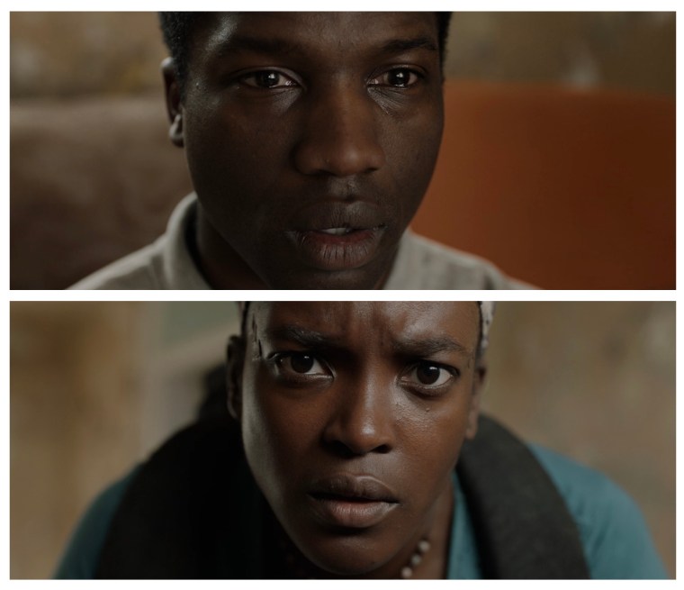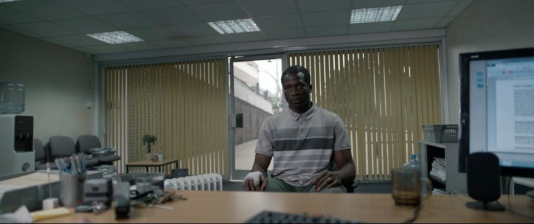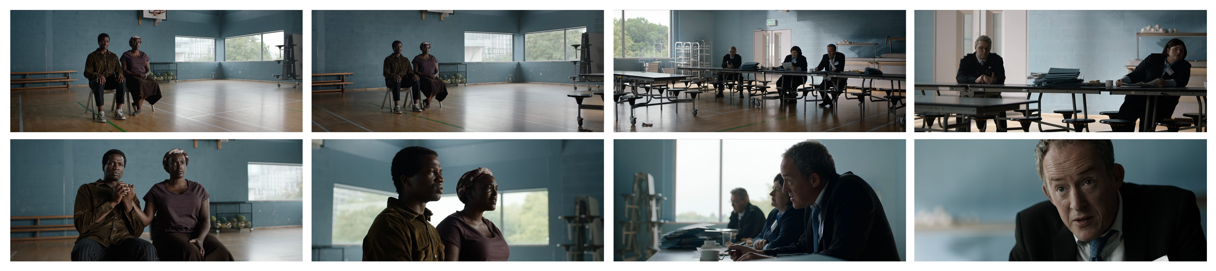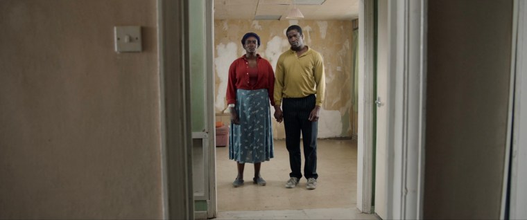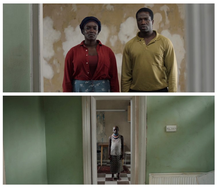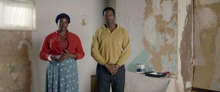 The scene – Bol (Sope Dirisu) and Rial (Wunmi Mosaku) are interviewed before being granted conditional British residency and assigned temporary housing.