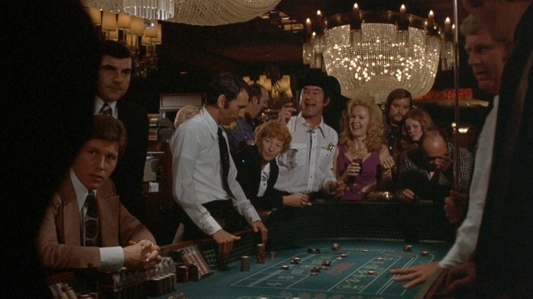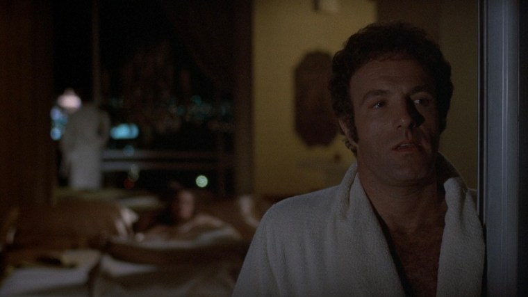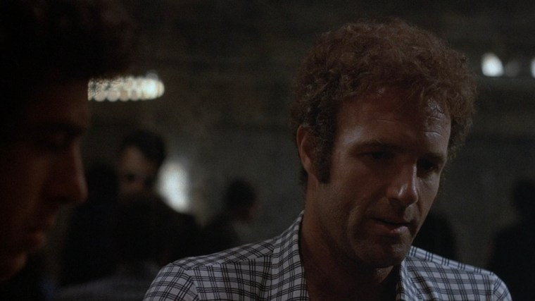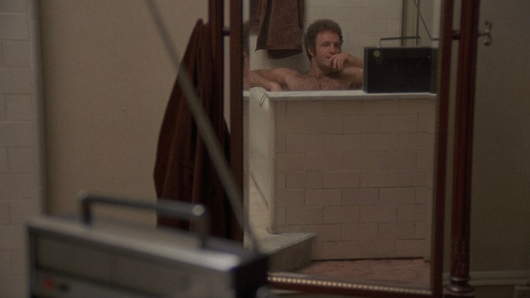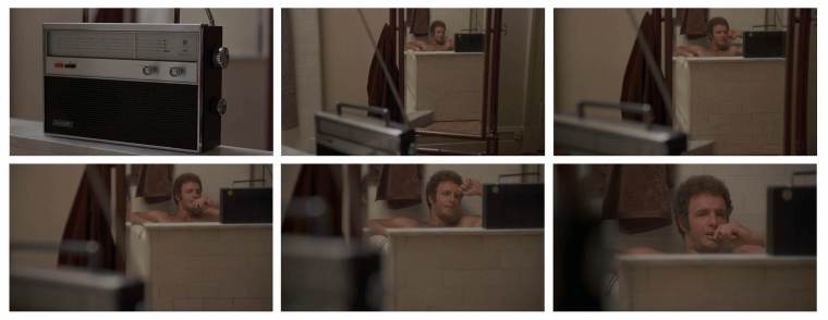 After winning big in Vegas, Caan can’t quit while he’s ahead and places a sizable wager on a Lakers vs. Sonics game. Caan’s anguished reaction during the game’s conclusion plays out below in a long, slow zoom that lasts nearly a minute and a half. The scene starts with an insert of a radio broadcasting the game and then – in a wider shot – the methodical zoom begins on Caan’s reflection in the bathroom mirror.