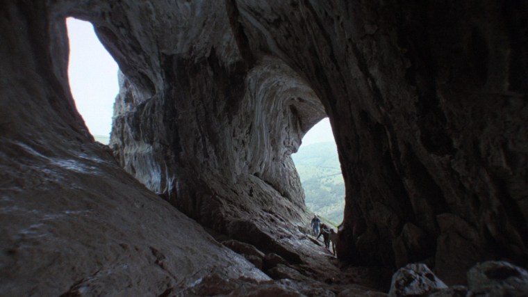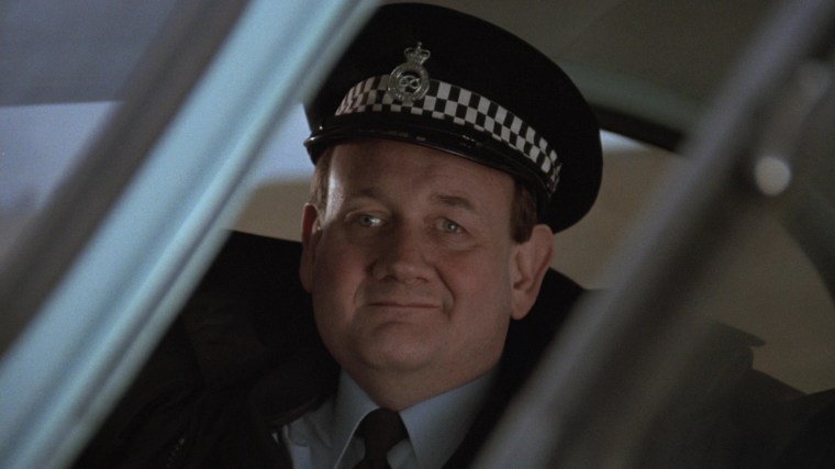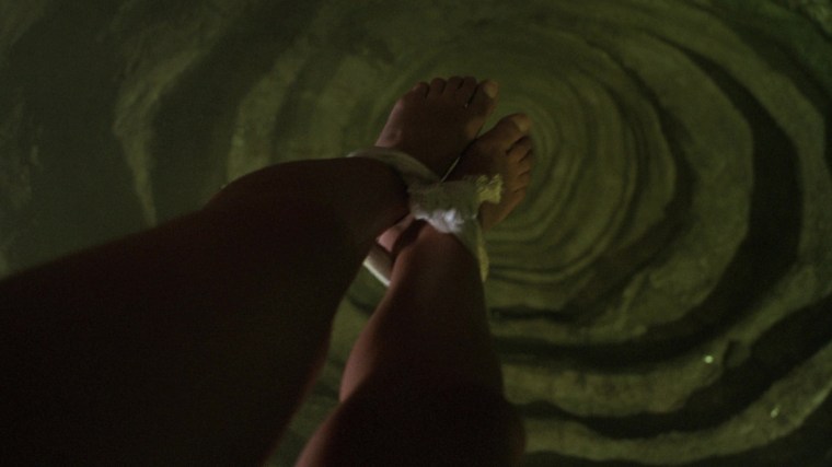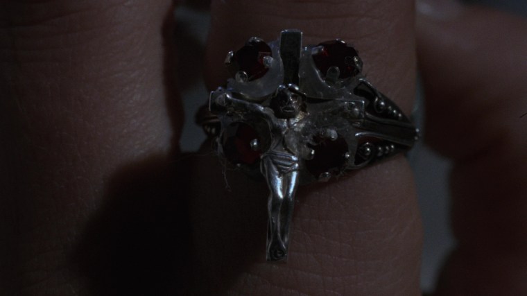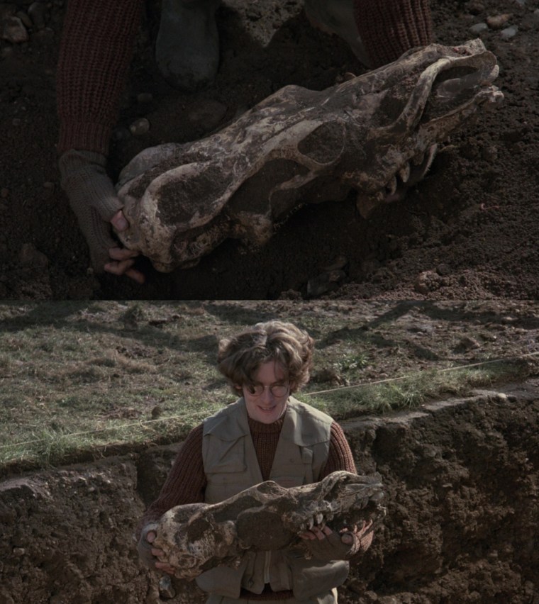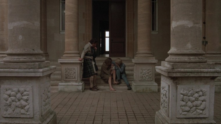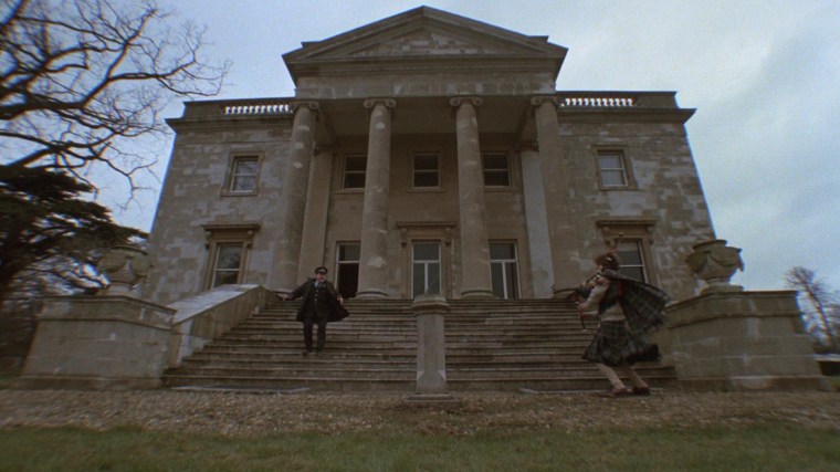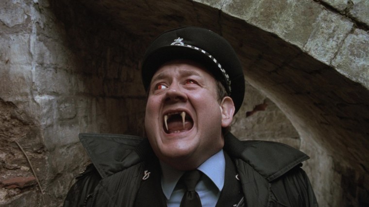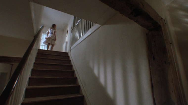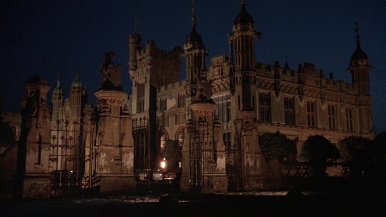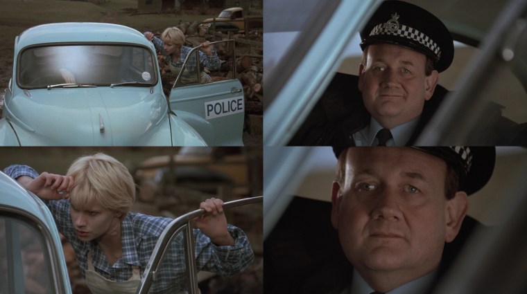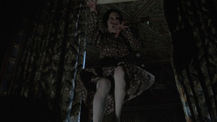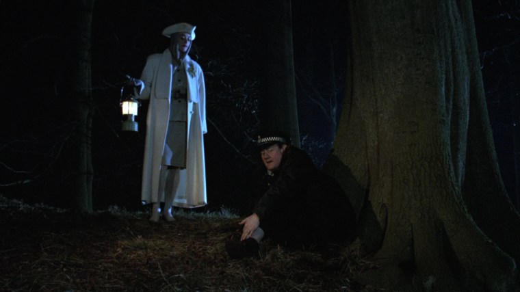 “There’s some quite moody locations in this film. I love location hunting. You discover parts of England you didn’t know existed. I didn’t know Thor’s Cave existed, but I was thrilled to find it. It seemed too good to be true and then when I chose the farm house for the girls, the geography of the house suggested scenes. When the snake lady is creeping about upstairs and all these doors open, it was because the doors were there and I thought, ‘Hey, these can be used.’ I find that various locations suggest scenes, like in the scene near the end when the girl is being chased by the vampire policeman and she goes in this semi-underground passageway. Well, I didn’t have a scene for that but having seen the possibilities, I wrote the scene in. That happens a lot. Also the sundial, which pierces the eye of the mad policeman. I saw the sun dial there and thought, ‘Hey, there’s going to be a confrontation here. Wouldn’t it be great if that sundial spike goes through his head and pokes his eye out?’”