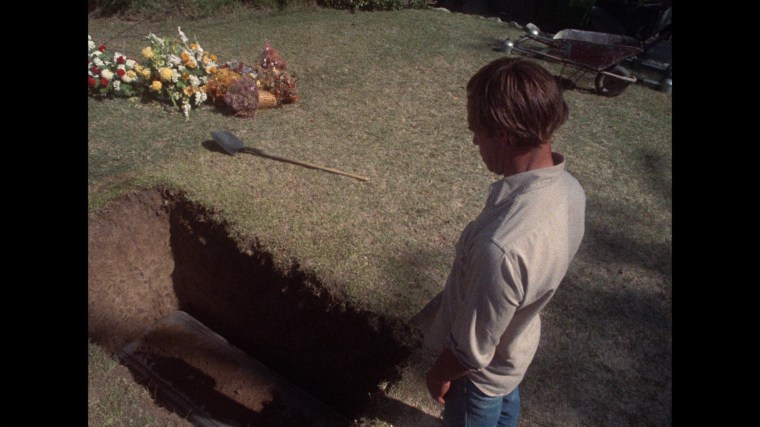 The first night of the two-part miniseries ended with this scene of grave digger Geoffrey Lewis – entranced by the siren call of the vampire – hopping into a freshly dug grave and getting chomped by Danny Glick.
