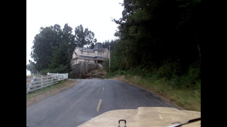 When location scouting in Ferndale, production found the perfect spot for the Marsten House on a hill overlooking the entire town. The only problem was there was already a house on that very spot. The issue was solved by paying the family who lived there $20,000 and guaranteeing them of all of the lumber needed to construct the Marsten facade overtop of their existing home. Here’s Hooper…