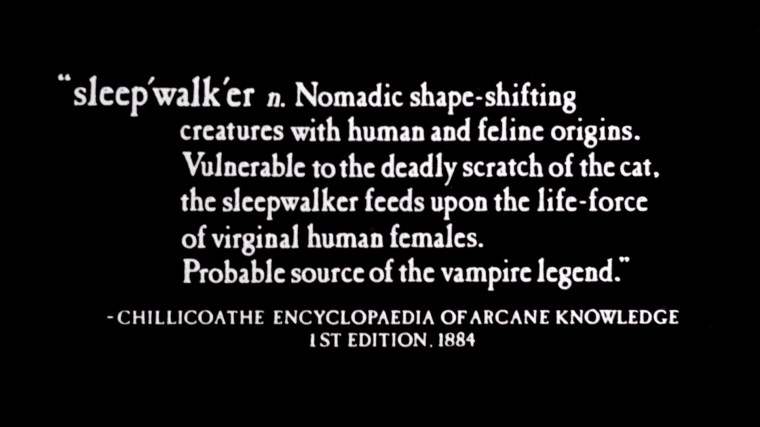 “There were a couple of ideas I put into it that hadn’t been in King’s original script. One is the introduction and title sequence from that page in the Book of Arcane Knowledge, which I invented, to give it a little backstory. And another was the scene where the Sleepwalkers are making love…That was to show with that blue glow that he sucks out of Tanya, he’s sucking the life force out of a virginal woman to feed it sexually to his mother. He injects it into his mother, if you will, with the same blue glow.” (#1)