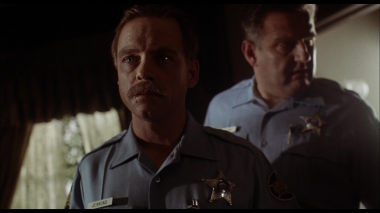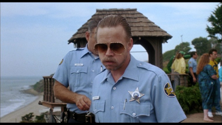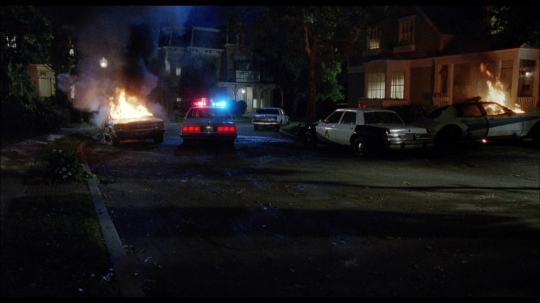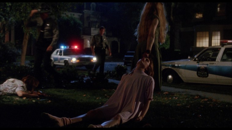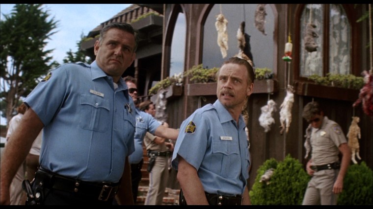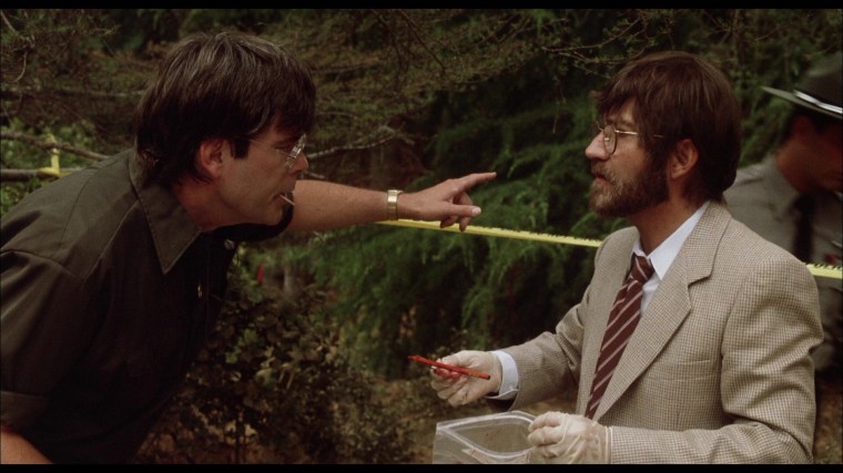 In the tradition of John Landis, Garris peppered the film with famous horror director cameos. In the oner above, the camera starts on slain cop Dan Martin and then follows cemetery caretaker Stephen King as he interacts with forensic techs Tobe Hooper and Clive Barker before the shot ultimately ends on a traumatized Tanya (Mädchen Amick) in the back of a police car. Though they had communicated extensively via phone and fax during preproduction, this was the first time Garris met King in person.