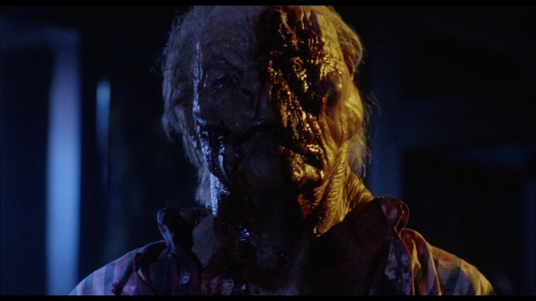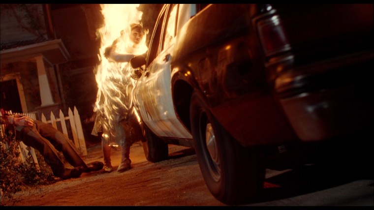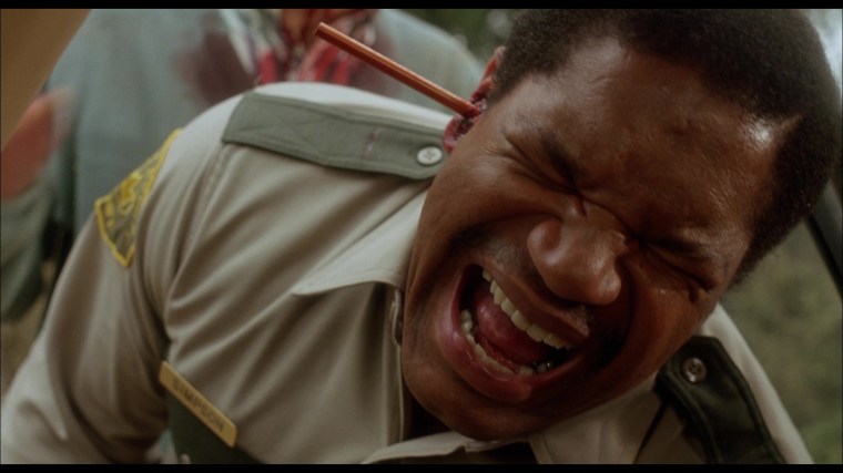 “We had two hours to shoot the scene. It’s all in one camera set up. If you took that scene and clipped it off right before the cop starts talking to Tanya, you’d never miss it for a moment. But for horror geeks like myself, it’s like an orgasm.” – Mick Garris (#1)