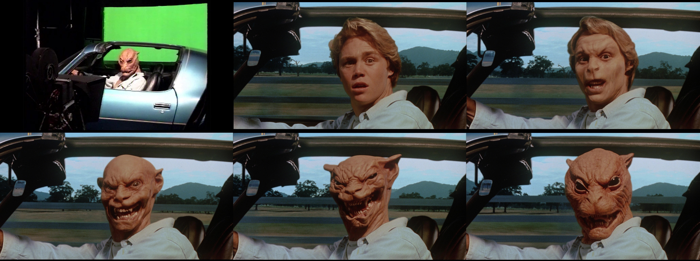 “We were making Sleepwalkers at the same time as Terminator 2 was being made, so these morphing effects had only been done in the John Landis/Michael Jackson video Black or White. The same company (PDI) who did the morphing in that did our morphing. It was complicated, because if you wanted to morph in a moving shot it had to be with motion control, which is a very time-consuming, clumsy, very exacting technique. You have to use heavy equipment, lay out tracks, and have them nailed down perfectly immobile and repeat your moves exactly with the computerized motion control system. So if they told you it was going to take eight hours, it would take 16 hours. It was very complicated. There was so much camera movement in the movie itself stylistically, that you needed to have movement on the transformations as well. There were times that we just didn’t have the time to do it that way, so we would push in the camera and then lock off and have a transformation take place after the move was completed rather than during.” – Mick Garris (#2)